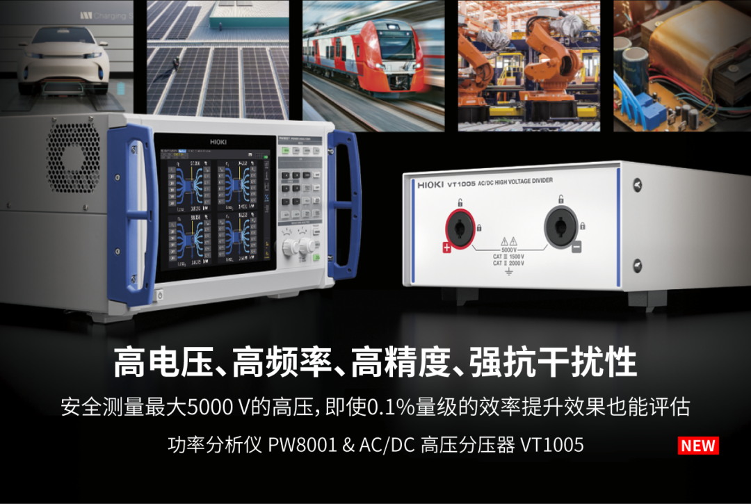 1.支持SiC功率半导体的普及,评估高压电路的逆变器效率。 2.VT1005可分压最大5000 V的电压,并将其输出至功率分析仪中。 3.为了高精度地测量高效变频器的效率,需要准确测量从DC到高频的功率。VT1005具有出色的频率精度,不仅能准确测量...