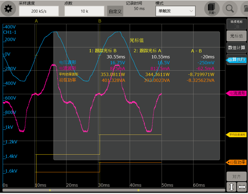 功率变化较大,想要观测到小于10ms的瞬态功率变化量,功率分析仪等仪器无法顺利完成测量。