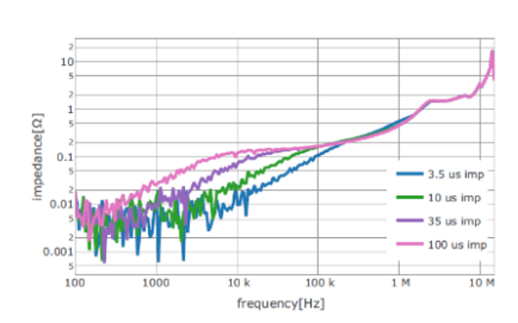 ISO7637-2标准规定,在试验中所使用的电源的内部阻抗在DC~400Hz时为「10mΩ以下」。另外,相同标准中还规定,Pulse2b为「0Ω~0.05Ω」,Pulse4为「0Ω~0.02Ω」。