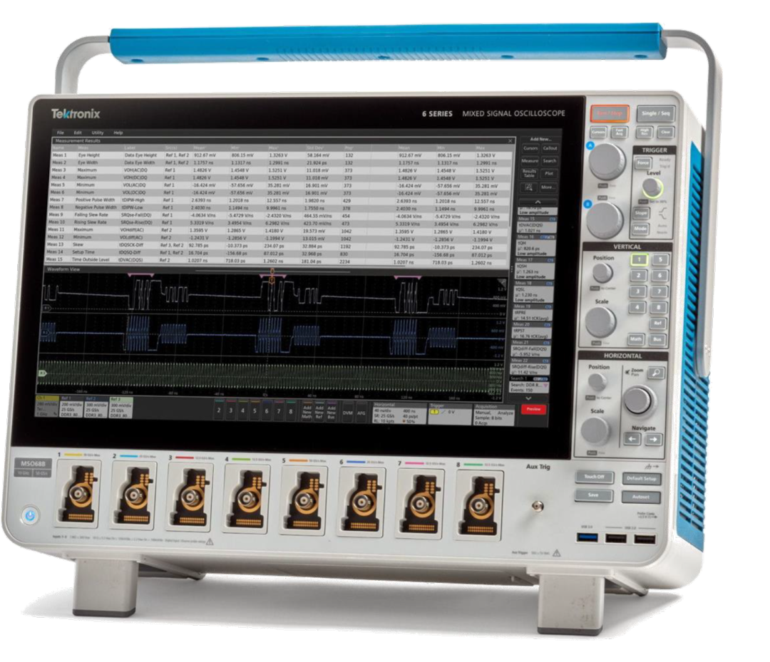 泰克MSO5B/6B系列无缝集成了 DPOJET Essentials 抖动和眼图分析软件包,扩展了示波器功能,可以在一个单次实时采集中,在相邻时钟和数据周期上获得测量数据。这使得可以测量关键的抖动和时序分析参数,例如时间间隔误差和相位噪声,帮助检定可能的系统时序问题。