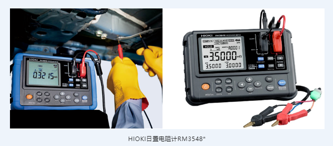 *RM3548 是一款 4 端子直流电阻计,可用 500 nA 至 1 A 的测试电流精确测量几十µΩ。符合电动汽车和充电电池安全标准ECE-R100 (*2)。