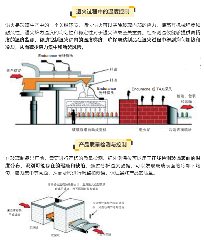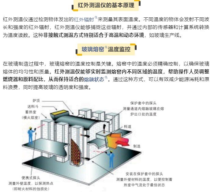红外测温仪在玻璃生产制造过程中扮演着至关重要的角色。玻璃生产过程涉及高温环境和复杂的温度变化,准确测量和控制温度对于确保产品质量和生产效率至关重要。以下是红外测温仪在玻璃生产制造过程中的具体应用和优势。