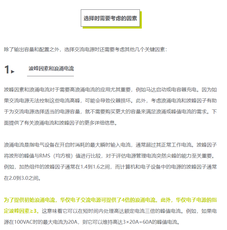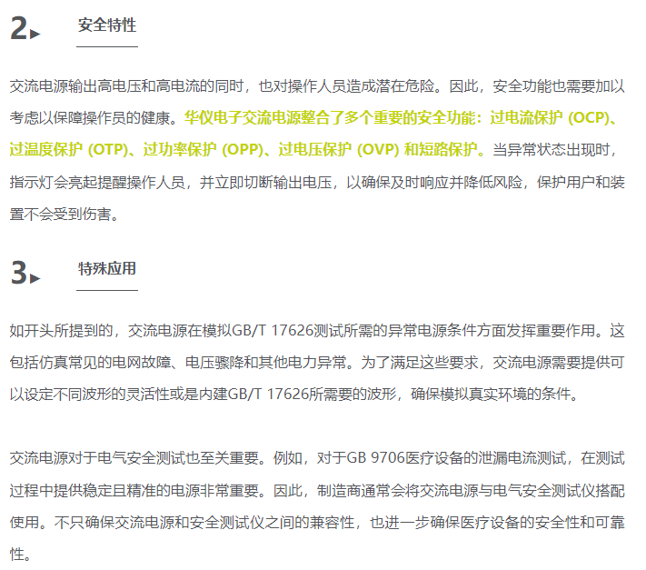 然而,市面上交流电源的选择众多,如何挑选到一款合适的交流电源相当具有挑战性。除了输出容量和配置等交流电源的基本功能,您还需要考虑波峰因素、浪涌电流、安全功能以及特定应用例如进行GB/T 17626测试或泄漏电流测试。