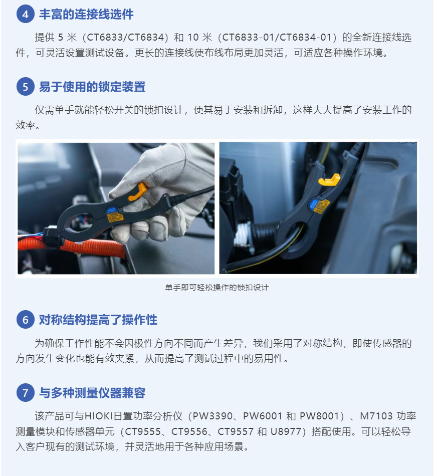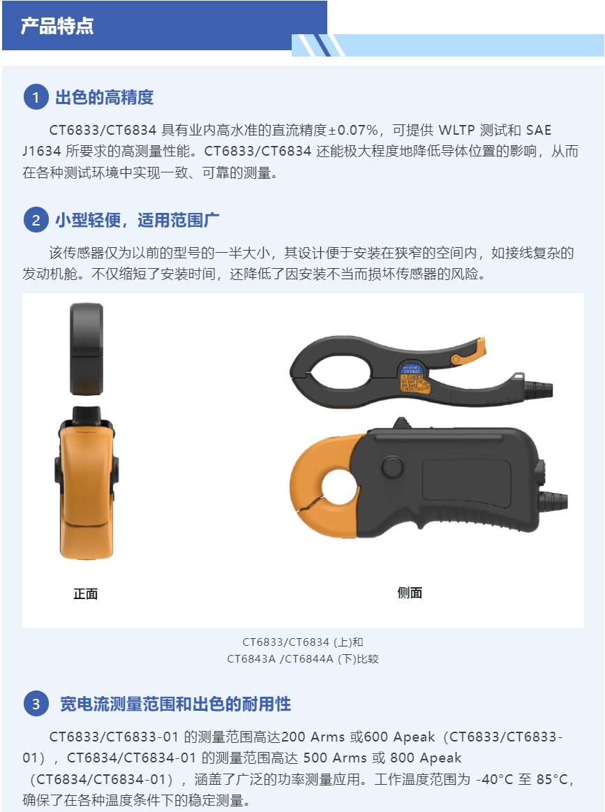 HIOKI日置于2025 年 2 月 12 日发售AC/DC 电流探头CT6833/CT6834,这是一款开口型电流传感器,适用于汽车功率测量应用。