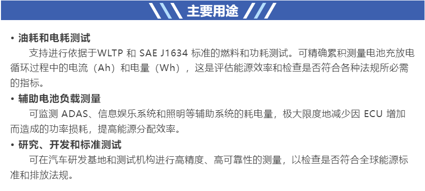 符合汽车行业的标准油耗和排放测试方法 (WLTP*) 以及国际标准 SAE J1634,可提供汽车制造商和测试机构所需的高精度测量,能大幅提高工作效率。