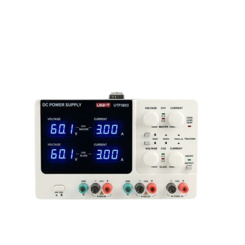 UTP3603直流稳压电源是一类高性能的具有三路输出的线性直流稳压电源。它拥有纯净的输出,优异的性能指标, 应用于产品研发调试、质量控制和检测、生产自动化测试和教学实验等场景,可满足多样化的测试需求。