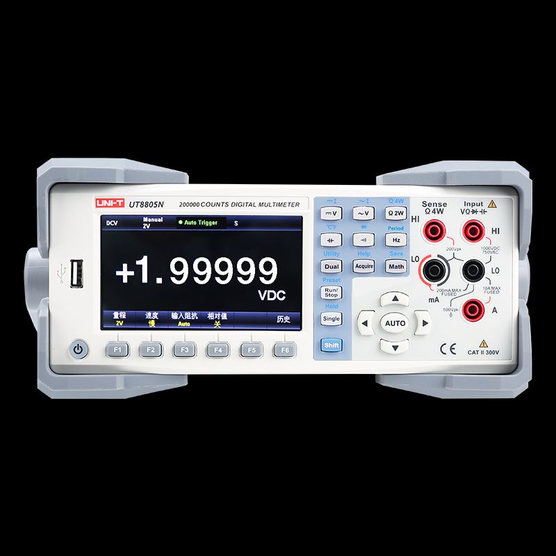 UT8805N配置4.3吋480*272分辨率的TFT显示屏,支持LAN、USB、RS-232C和GPIB(选配)操作,适合作为实验室工作用表和自动化测试系统中的高精度测量。