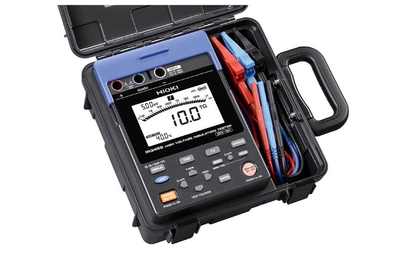 5档量程的高压绝缘电阻表 试验电压:250/ 500/ 1k/ 2.5k/ 5kV 泄漏电流、电压、温度、绝缘判断、数据存储等 带硬盒的一体式。