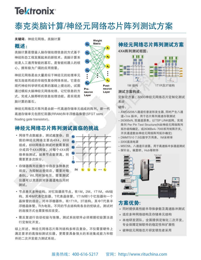 半导体芯片和器件 泰克类脑计算神经元网络芯片阵列测试方案
