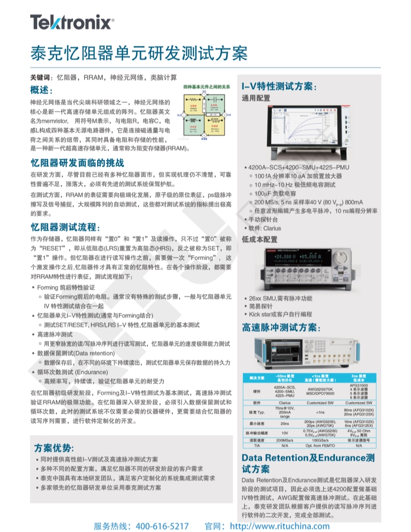 半导体芯片和器件 泰克忆阻器单元研发测试方案
