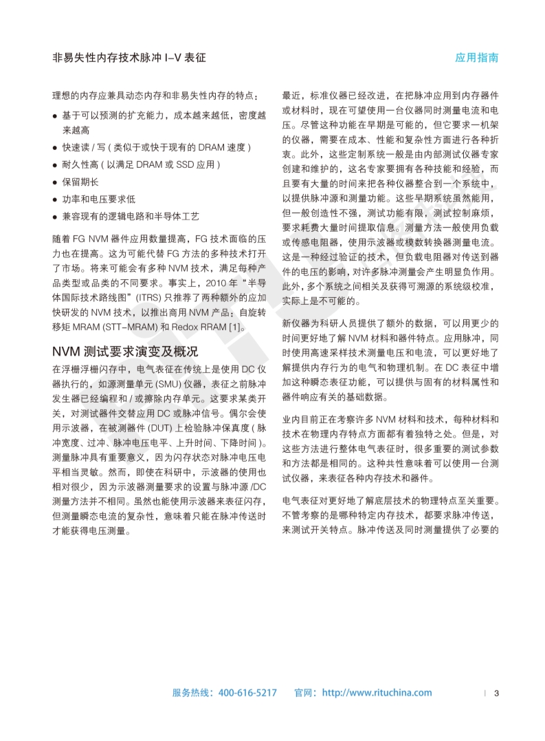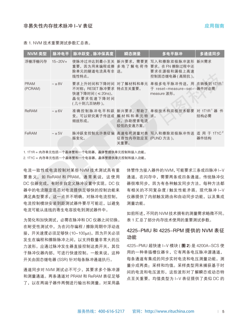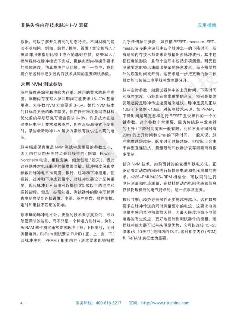 非易失性内存技术脉冲I-V表征