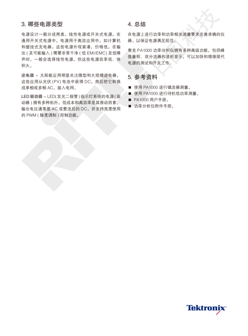 使用PA1000功率分析仪进行电源测量