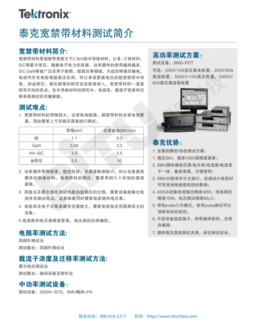 自动参数化测试 宽禁带半导体器件GaN, SiC 泰克宽禁带半导体器件GaN, SiC方案一页纸
